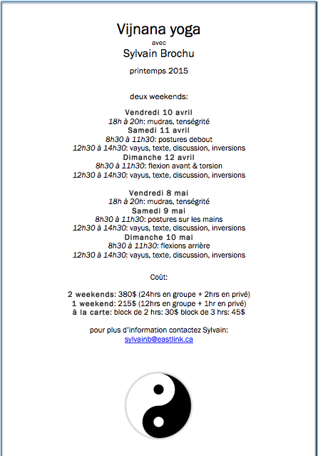 Vijnana Yoga workshop, which includes meditation, pranayama and asana, Sylvain